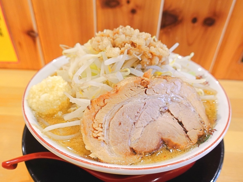 味噌仕立たてのG系ラーメン、”味噌二郎”で人気のお店です。豚骨スープを特製味噌ダレで仕上げた味噌ラーメンは、味噌のコクと甘みが利いて、濃厚ながらマイルドな味わい。対する麺は、オリジナルの”逆切り麺”。スープとの絡みを考慮して作られた極太の平打ち麺です。麺がスープの旨みをまとって食べごたえ十分。ぶ厚いチャーシューや野菜がてんこ盛りのトッピングにも大満足!ニンニクをガツンと利かせて召し上がれ♪メニューはほかにもつけ麺、まぜそばのほか、特大から揚げなどのサイドメニューもラインナップ!